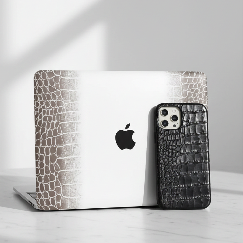 Découvrez "L'Héritage", notre coque en cuir PU texturé Croco. Le fini Marron Audacieux apporte une profondeur et un caractère intemporel à votre MacBook. Cette pièce est conçue pour les esprits exigeants qui refusent de choisir entre une protection robuste et un style indéniablement chic.