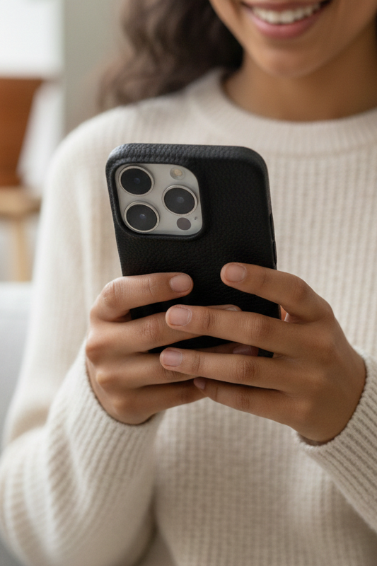 Nous croyons au "Luxe Discret". Chaque pièce est conçue pour durer dans le temps. Nous appliquons des finitions soignées qui résistent à l'usure, assurant que votre coque reste impeccable et vous accompagne année après année.